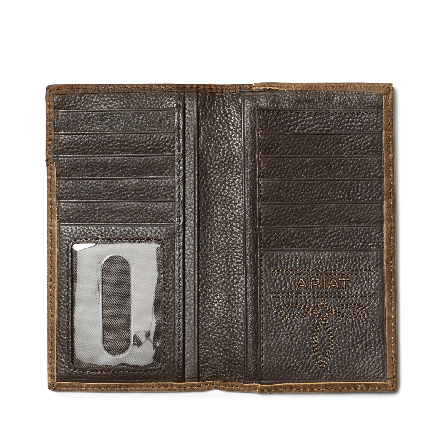 Esta cartera de piel con aspecto de rodeo para hombre presenta un estampado floral con un gran estilo western. En su interior encontrarás abundantes compartimentos para tus tarjetas de crédito, dinero en efectivo y documentos de identidad.