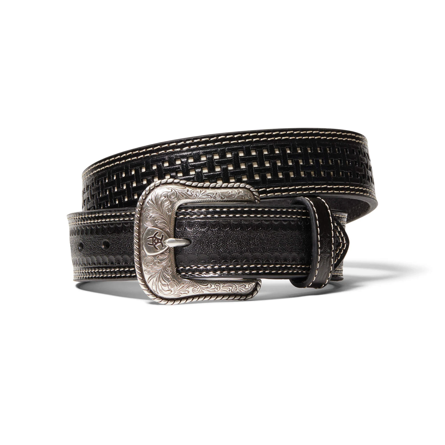 Elegante, sencillo y resistente. Este cinturón Ariat para hombre cuenta con una correa en relieve de tejido y una hebilla metálica.